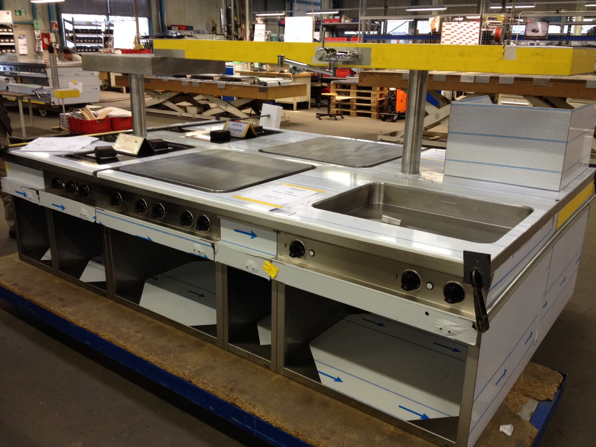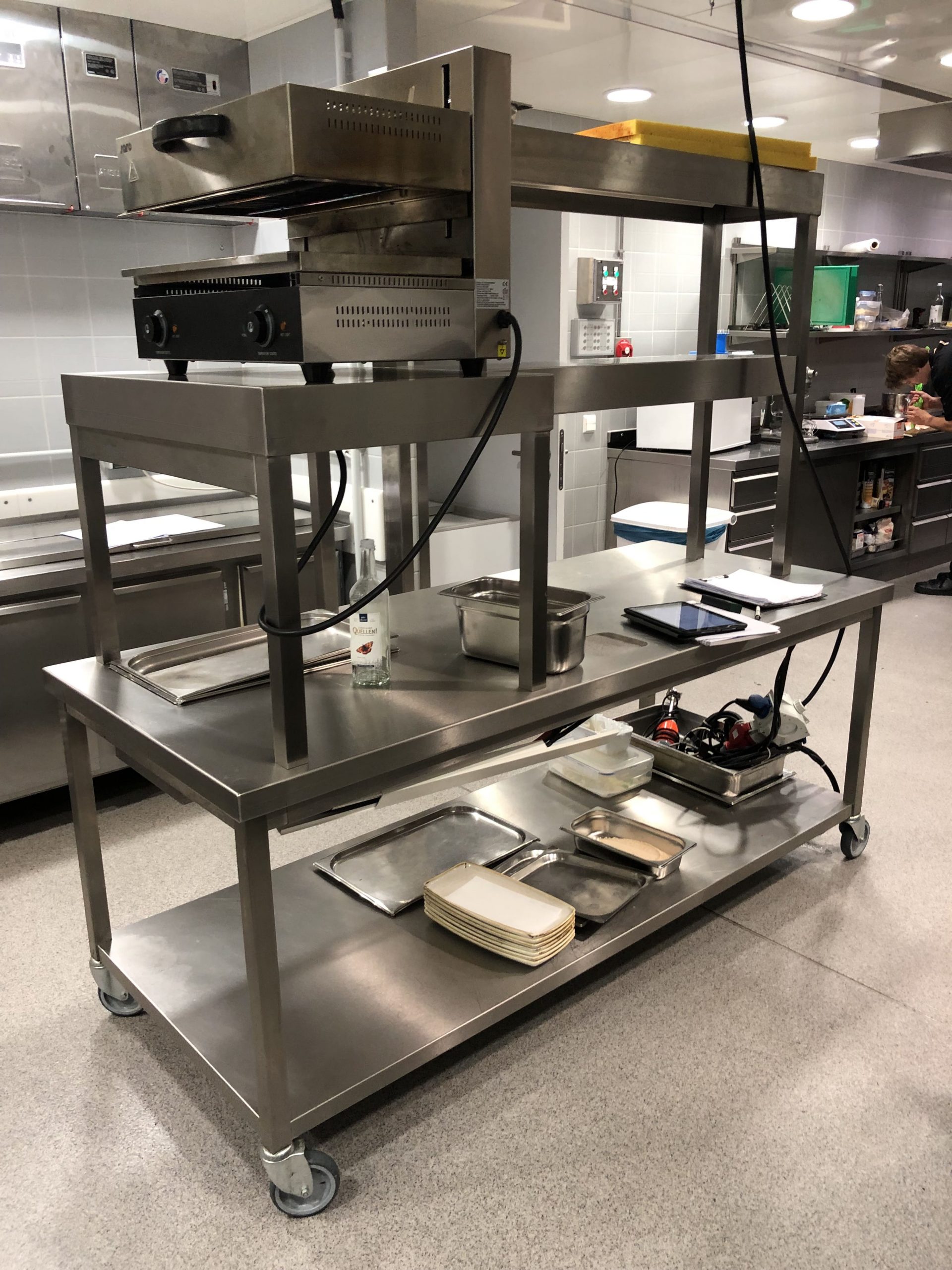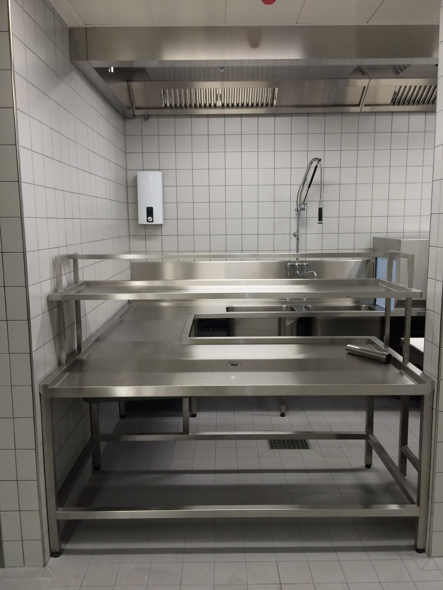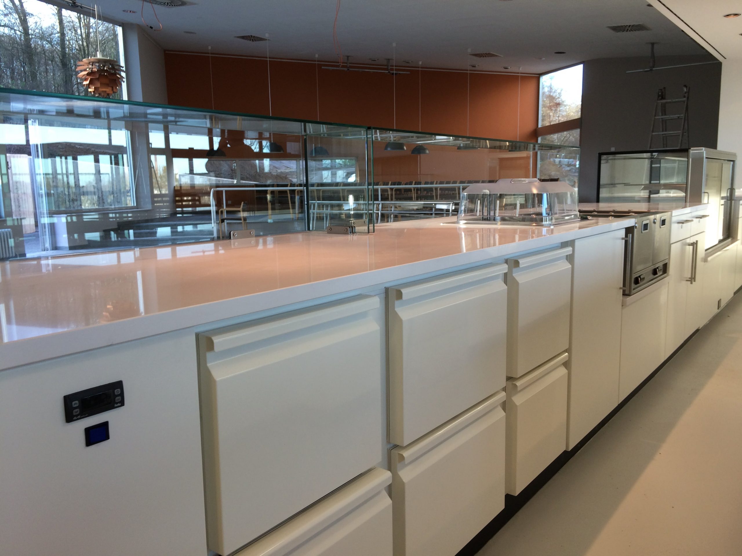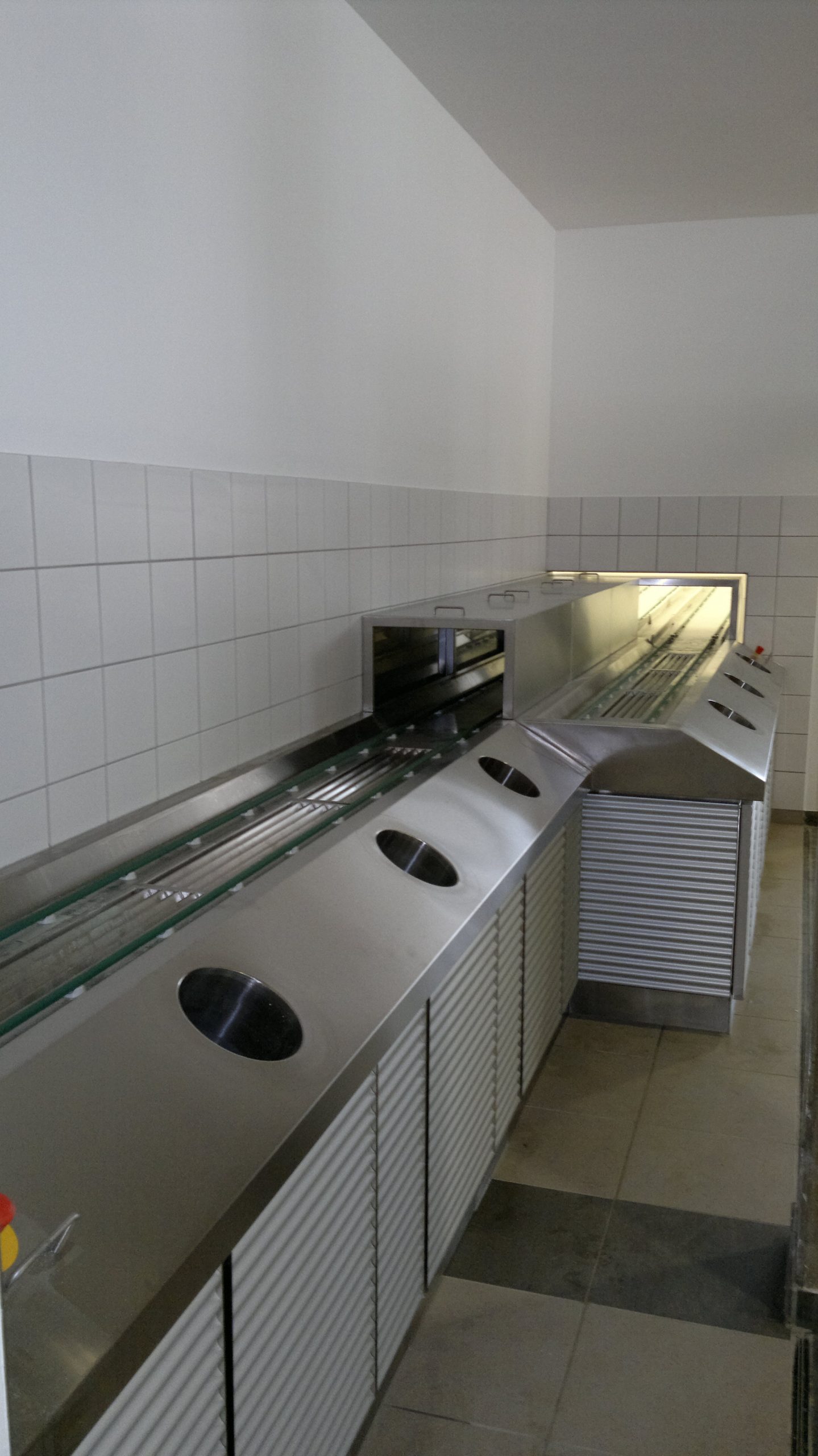 Kühltisch und Ausgabe in weiß pulverbeschichtet