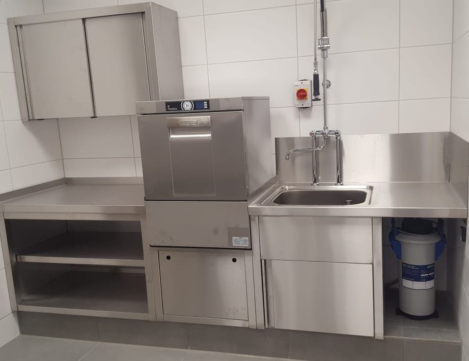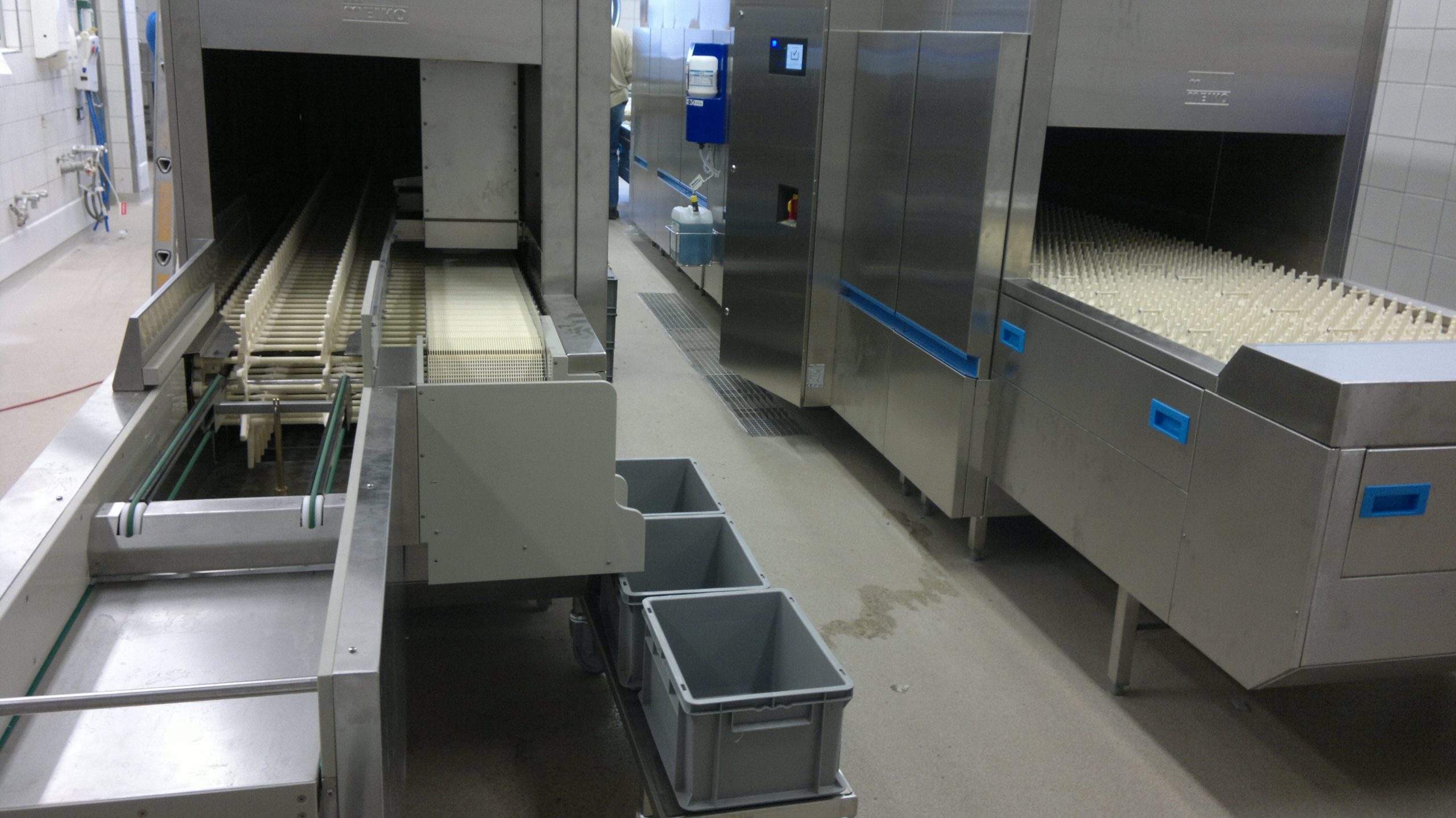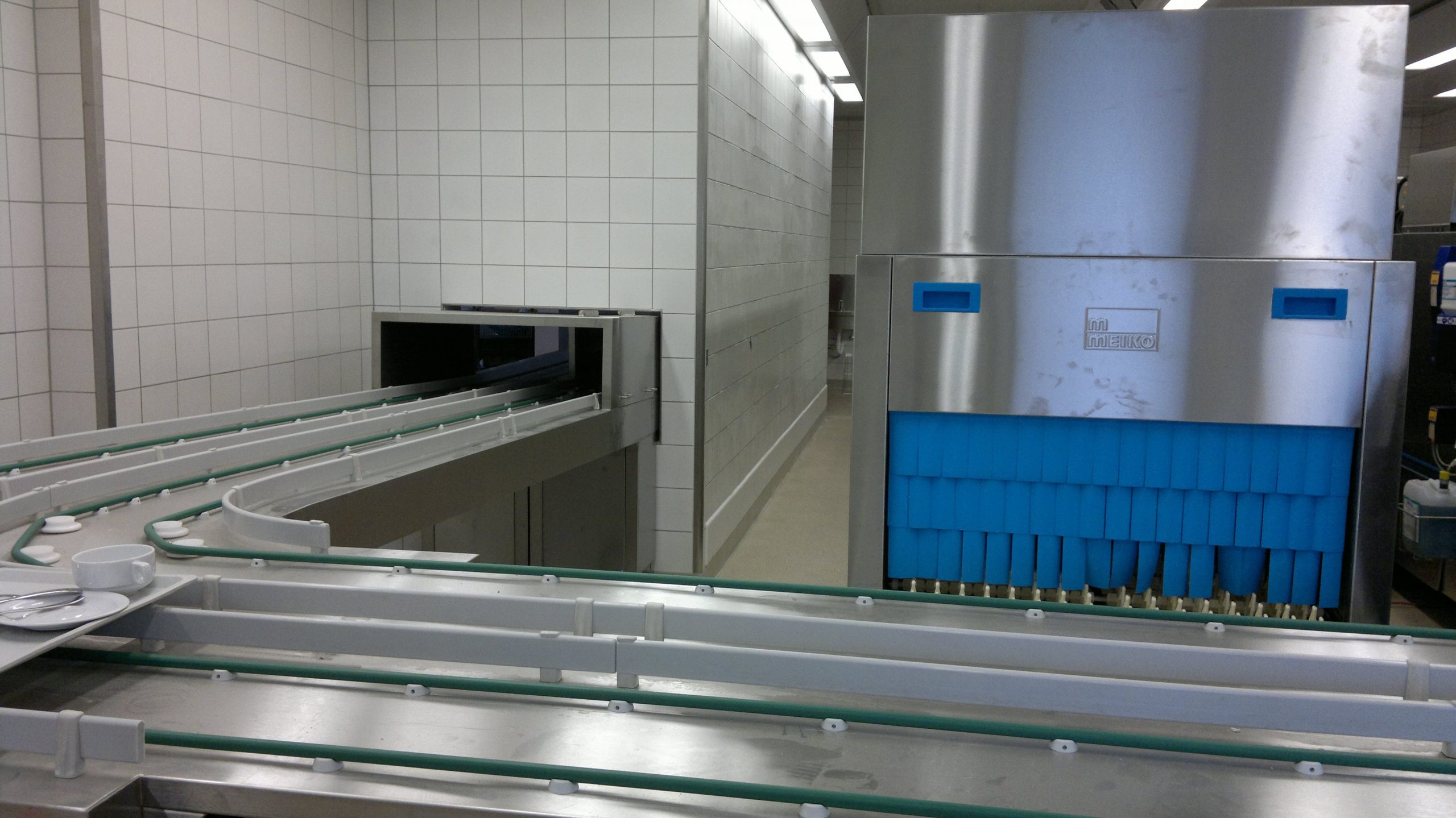 Zentrale Geschirrrückgabe mit im Bestand eingebaut